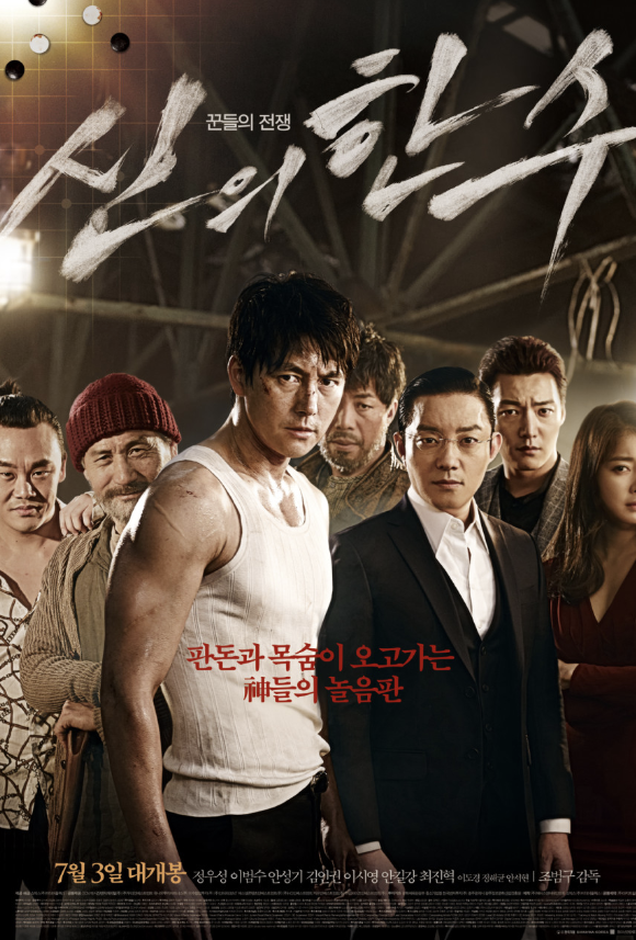 2014년 개봉한 신의 한 수는 바둑을 소재로 한 범죄 액션 영화로, 조범구 감독이 연출하고 정우성이 주연을 맡았다. 단순한 지적 스포츠인 바둑을 도박과 범죄 세계의 중심에 놓으며, 인간의 탐욕과 배신, 그리고 복수의 서사를 폭발적인 액션과 결합했다. 정우성은 한순간의 패착으로 모든 것을 잃은 전직 기사가 된 주인공 태석을 연기했고, 이범수, 안성기, 김인권, 이시영 등 배우들이 개성 있는 캐릭터들을 소화해 영화의 긴장감을 극대화했다. 신의 한 수는 356만 명의 관객을 동원하며 흥행했고, 한국 영화에서 드물게 ‘바둑’이라는 소재를 중심으로 액션과 누아르를 결합한 독창적인 작품으로 기억된다.